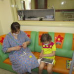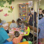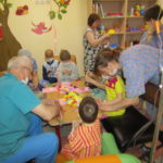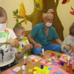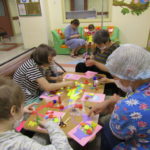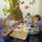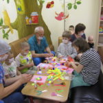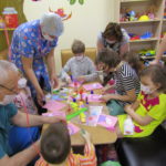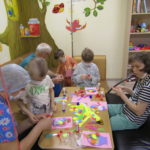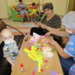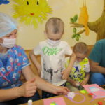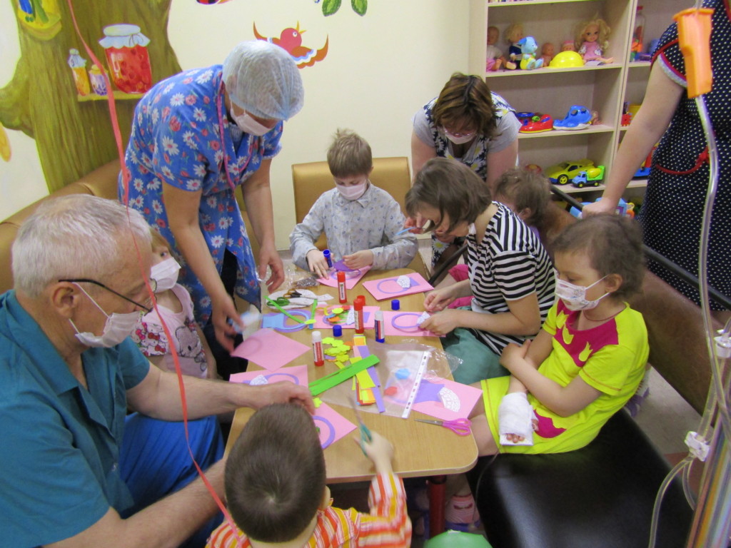 Очередное занятие прошло в онкологическом отделении Нижневартовской окружной клинической детской больницы. Волонтеры предложили детям делать аппликацию корзиночки с цветами.
